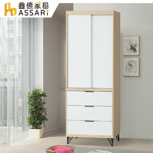 原木雙色鐵腳2.7尺推門衣櫃(寬81x深60x高200cm)