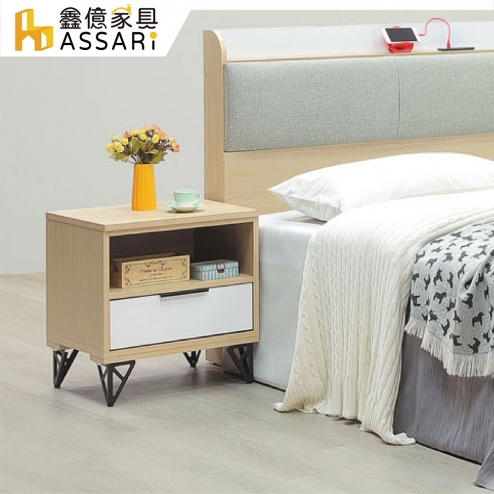 原木雙色鐵腳床邊櫃(寬51x深40x高52cm)