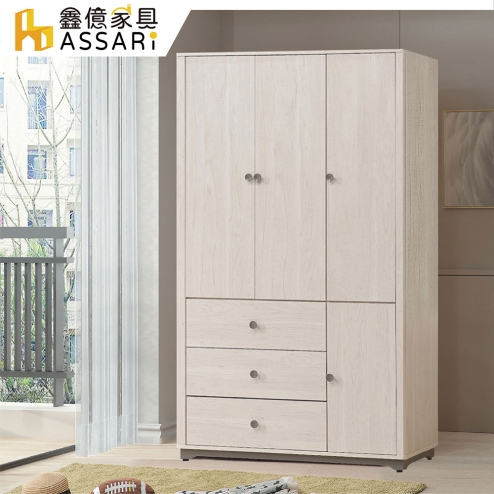 艾莉爾4尺三抽衣櫃(寬120x深55x高200cm)
