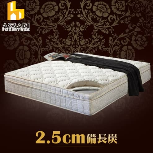 風華2.5cm備長炭三線強化側邊獨立筒床墊(單大3.5尺)