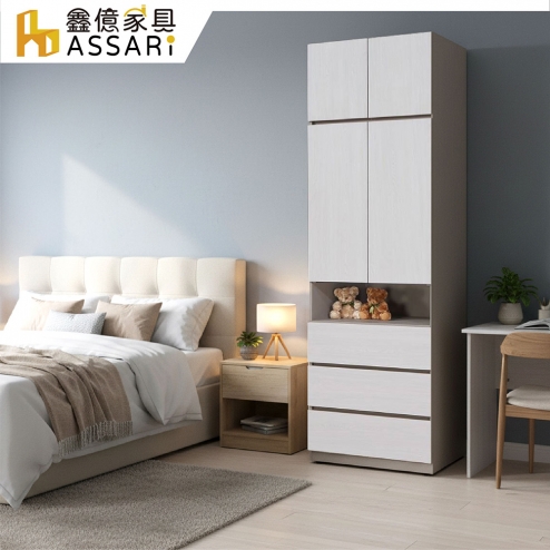 安迪2.5尺三抽加高衣櫃(寬75x深57x高249cm)(訂製款)