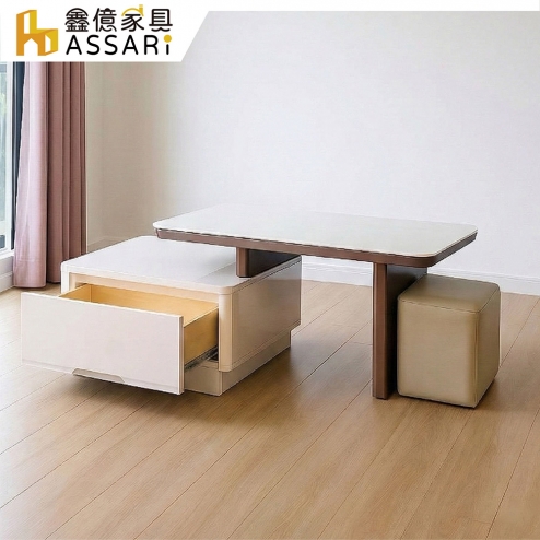 德維特機能伸縮玻璃大茶几(附椅凳)