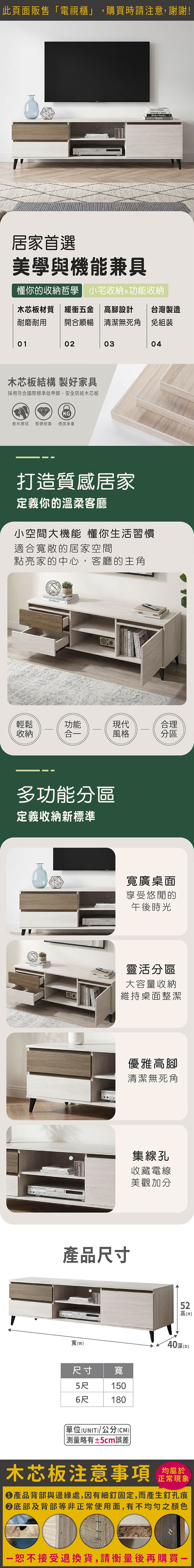 6尺奧德電視櫃(寬180x深40x高52cm)