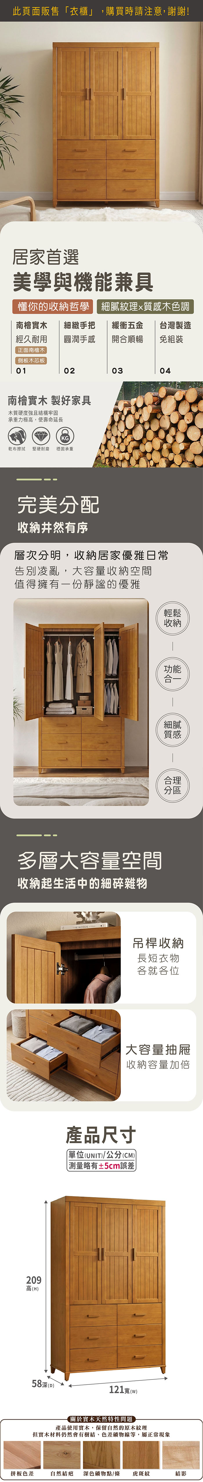 4尺莉森南檜衣櫃(寬121x深58x高209cm)